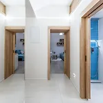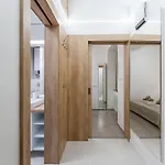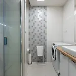 The apartment includes a fully equipped kitchen with an air conditioner and a washing machine for utmost comfort.